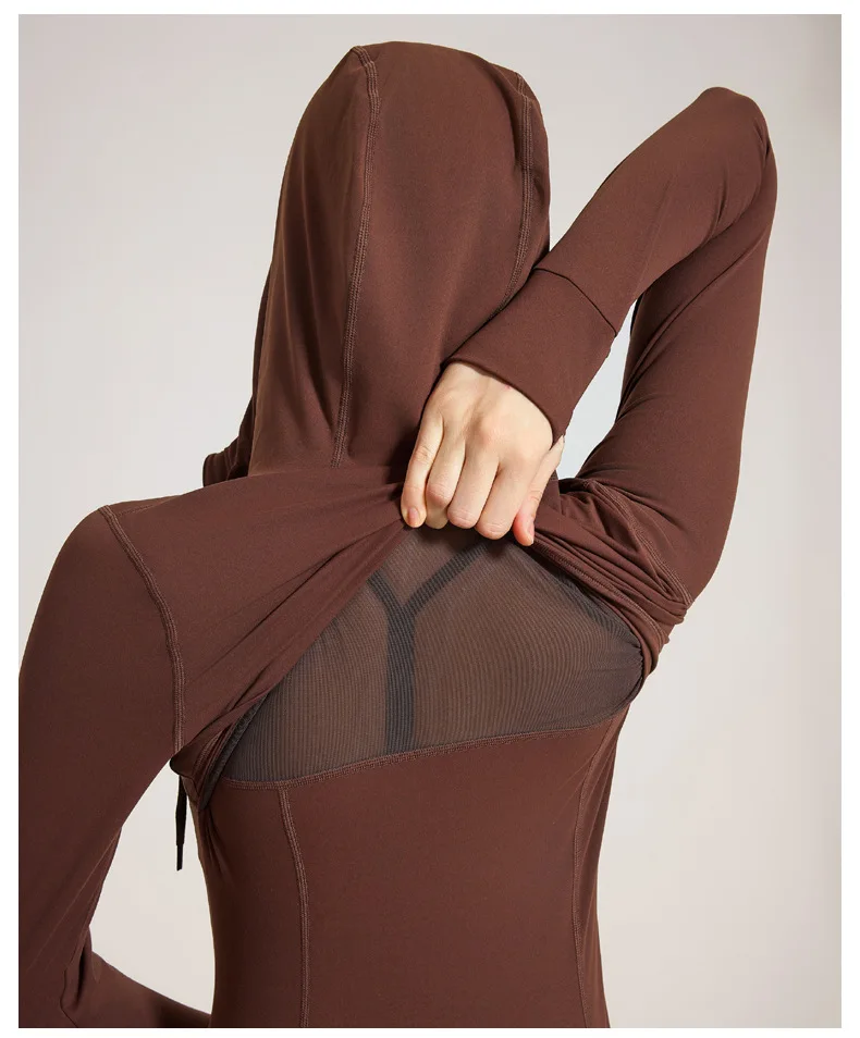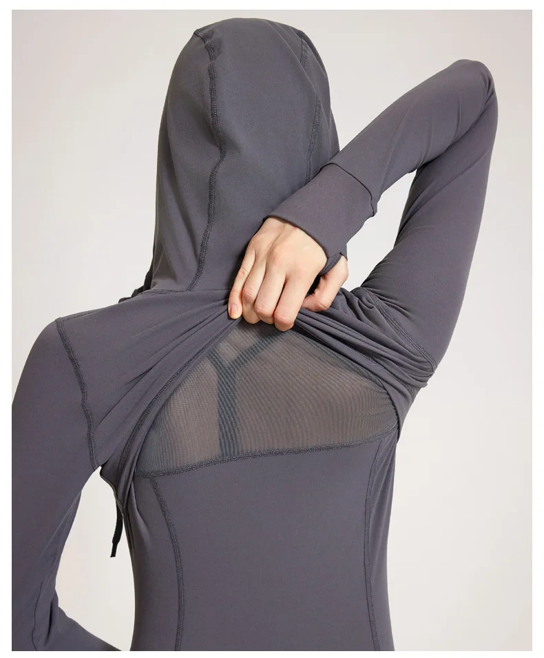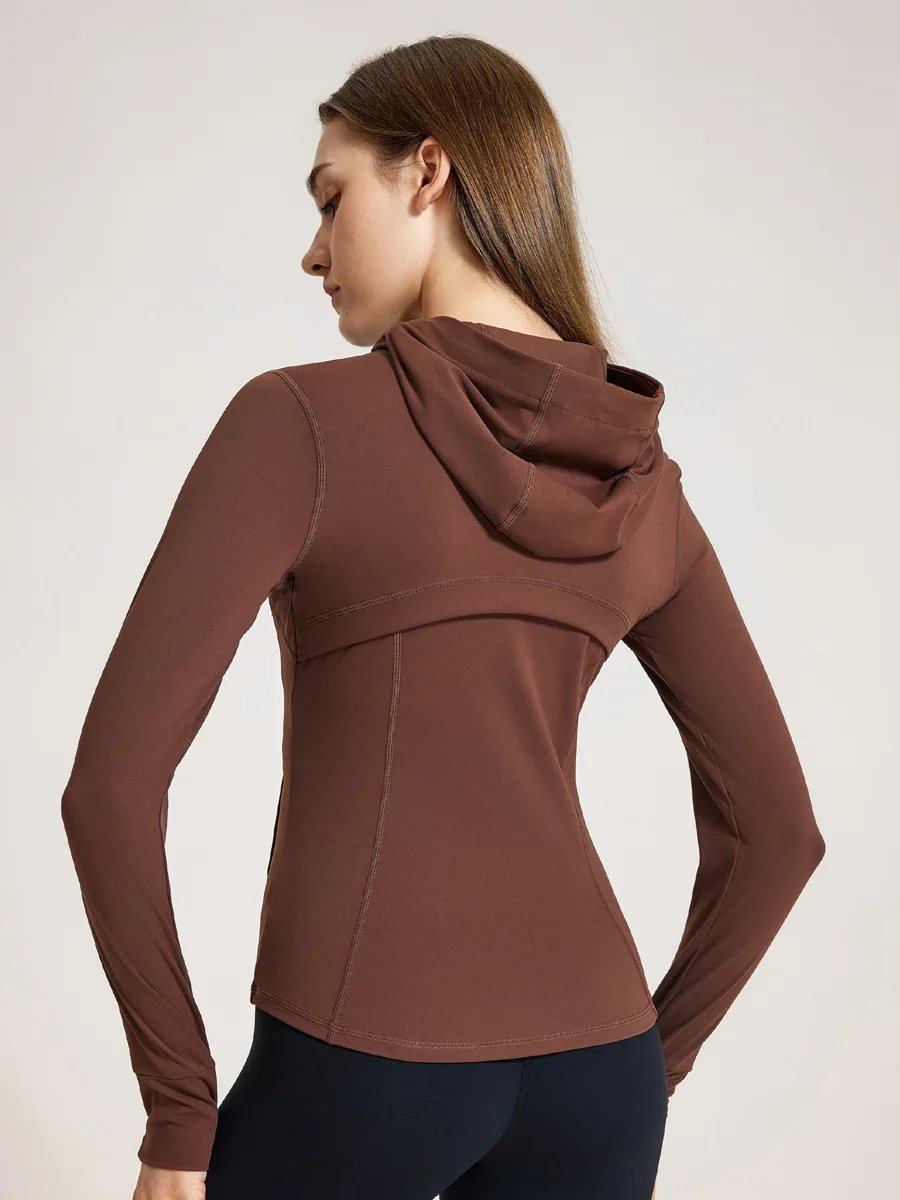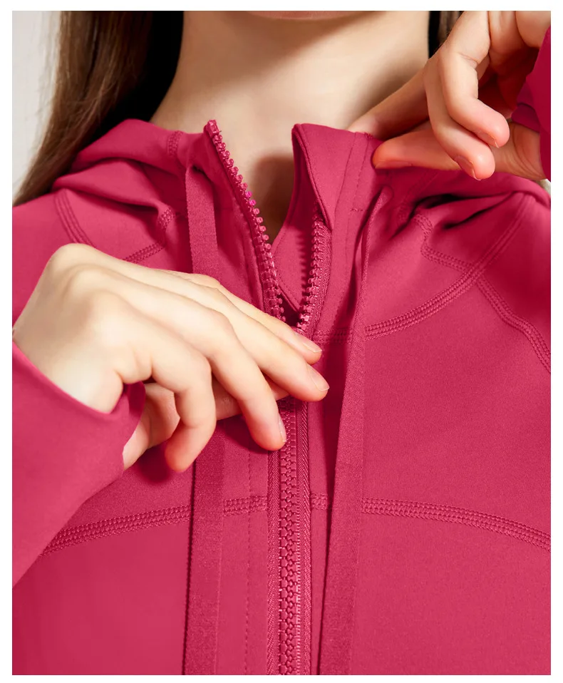 Be Unique Slim Fit BBL Long Sleeve Zip up Yoga Jacket w/Hood